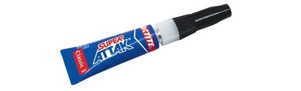 Super Attack, adesivo istantaneo universale. Lo speciale beccuccio ne permette un facile dosaggio e applicazione. Un ago anti-otturazione permette al prodotto di non seccarsi ed essere sempre pronto all’uso. Ideale per incollare gomma, metallo, ceramica,legno, cuoio, pelle e molti tipi di plastica. •FORMATO: tubetto