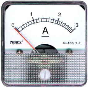 AMPEROMETRO A BOBINA MOBILE MISURE IN CC. Con dispositivo d'azzeramento. MATER.: resina trasp.antiurto. CLASSE:2,5. Portata: 0 A ÷ 5 A.