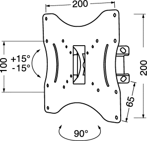 Supporto da muro per TV LED/LCD/Plasma, con uno snodo ruotabile in orizzontale di 20° e inclinabile in verticale di ±15°. Di facile montaggio per TV standard VESA 50-75-100-200. • Per TV LCD da 15"a 30"• Distanza dal muro: 6,5cm • Peso massimo sopportabile: 25kg • Peso del supporto: 1,1 kg