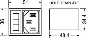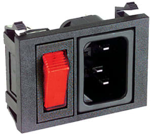SPINA TRIPOLARE C14 CON INTERRUTTORE A BILANCIERE LUMINOSO. FISSAGGIO:autobIoccante. PORTATA:10 A - 250 V. CORPO:bacheIite. CONTATTI:ottone. FISSAGGIO CAVO:a saIdare. PER PRESE:13/845. CAVI:6/300.