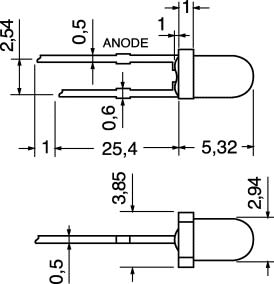 LED CILINDRICI A FASCIO DIFFUSO Ø 3 mm. MAX POTENZA:100 mW. TEMP. LAV.:-40°C ÷ +80°C. PER PORTALED: 4/8142- 4/8168. Intens.Lum.: 3 MCD. Colore: Rosso.