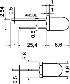 LED AD ALTA LUMINOSITA' TRASPARENTE Ø 5 mm. MAX. POT. DISSIP.:100 mW. TEMP. LAV.:-25°C÷+85°C. PER PORTALED:4/8146 - 4/8170.