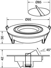 GHIERA TONDA ORIENTABILE CON CONNESIONE GU5.3. Ghiera portalampada tonda professionale da incasso orientabile in alluminio. Fissaggio della lampada ad incastro. Adatto per installazioni tradizionali e di design. Fornita con cavetto connessione GU5,3. Utilizzabile anche per lampade GU10 previo utilizzo del connettore 19/6992 non in dotazionePotenza max installabile: 50w. Foro incasso: 85mm. Colore: Cromata.