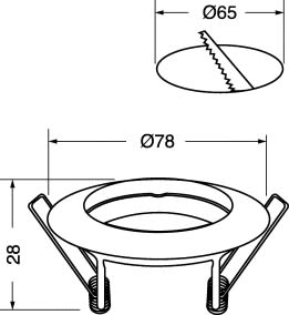 GHIERA TONDA CON CONNESSIONE GU5,3. Ghiera portalampada professionale da incasso in alluminio. Fissaggio della lampada ad incastro. Adatto per istallazioni tradizionali e di design. Fornita con cavetto connessione GU5,3. Utilizzabile anche per lampade GU10 previo utilizzo del connettore 19/6992 non in dotazione. Potenza max installabile: 50w. Foro incasso: 65mm. Finit.: Cromata.
