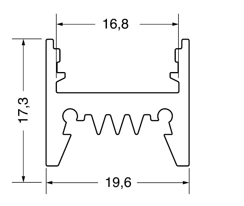 L’S17 è un profilo in alluminio anodizzato da abbinare a strisce o basette led di alta potenza/ luminosità (14,4 W/mt IP65 o superiori) per garantire la corretta dissipazione termica in soluzioni a pavimento, a muro o soffitto. Può essere corredato di copertura in policarbonato ad innesto rapido, resistente agli UV e agli urti accidentali. Disponibile con finitura satinata. La finitura satinata permette il mascheramento delle sorgenti LED dando una perfetta uniformità di diffusione della luce. Profilo daIncasso S17 senza copertura. Materiale: Policarbonato. Colore: Argento. Dimensioni:2mt.