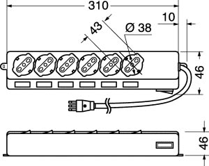 ELCART DISTRIBUTION - ERT280160000 PRESA MUL.6 POSTI C/CAVO +7 INTER - 280160000