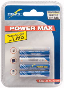4pz PILA LITIO AAA 1,5V 1100mAh. Per MP3, MP4, walkman, crono termostati ed impieghi vari. TENSIONE:1,5V. CAPACITA’:1100mAh. CUSTODIA:30/56.