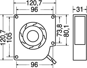 VENTILATORE INCAPSULATO SUPPORTO BRONZINE 120x120x31 mm. ELICA:poliestere termopl. TEMP. LAV.:-10°C÷+70°C. FATT. RUMORE:45 dB. GIRI MIN./RPM:2700. CFM:25. Per computer, strumenti, ali- mentatori, amplificatori, tele- visori, videogiochi, videoregi-stratori.