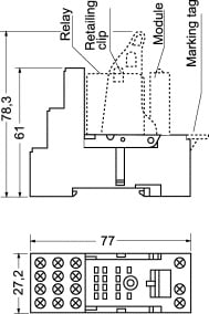 ZOCCOLO GUIDA DIN PER RELÉ 4 SCAMBI SERIE PT5. TERMINALI:a vite. PORTATA:6A - 240Vca. N° POLI:4. PROTEZIONE:IP20. RIGID. DIELETTR.:2,5 KV. PER RELÉ:4/7790. MOLLA:93/6868. MODULI PROT.:93/6896.