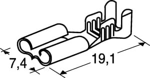 TERMINALI MASCHI 6,3 mm AMP SERIE FASTIN-FASTON. MATERIALE:ottone stagnato. SPESSORE:0,8 mm. SEZ.FILO:da 0,8 a 2,1 mm². DIAM.ISOL.:da 3,1 a 4,1 mm. PER FASTON:98/58460. BLOCC.:98/58110 - 98/58285.