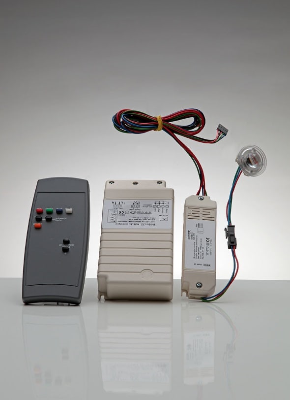 Controller RGB 350mA 27LED + telecomando. Alimentazione SPOTLED50RGB 3x1W. Alimentazione SPOTLED111RGB 9x1W. Bloccacavo antistrappo. Identificazione della polarità. Protezione termica. Protezione cortocircuito. Grado di protezione IP40. Dimmerabile tramite pulsante ON/OFF/COLOR. Regolazione continua del colore tramite pressione del pulsante. Possibilità di sincronizzazione di più apparecchi tramite 2 collegamenti. Potenza: 27W.