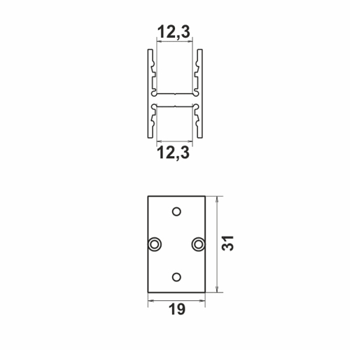 Profilo in alluminio anodizzato per Proline 3031. IP44. Classe III. Dimensione: 1000x19x31mm.