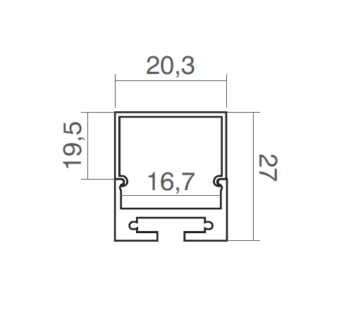 Profilo in alluminio anodizzato di colore bianco per Proline 2027. IP20. Classe III. Lunghezza : 2000mm.