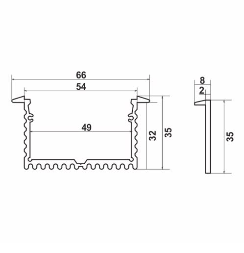 KIT PROLINE 6635. Il Kit è composto da: Profilo + tappi + diffusore + molle di fissaggio. Profilo in alluminio anodizzato. Diffusore in policarbonato opalino resistente ai raggi UV. Profilo in alluminio completo di tappi di chiusura e molle da incasso. Lunghezza barre fino 2m. Finitura: Alluminio anodiz.