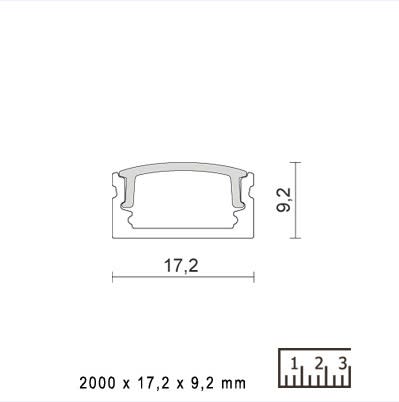 Profili in lega di alluminio estruso, anodizzato, opale, ideali per l'installazione di strip led. 4 ganci di fissaggio e 4 tappi di chiusura (2 + 2), sono forniti con il profilo. Lunghezza(mm) : 2000. Larghezza(mm) : 17.2. Altezza(mm) : 9.2.