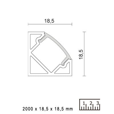 Profili corner in lega di alluminio estruso anodizzato, cover semi-trasparente, ideali per l'installazione di strip led. 4 ganci di fissaggio e 4 tappi di chiusura (2 + 2), sono forniti con il profilo.