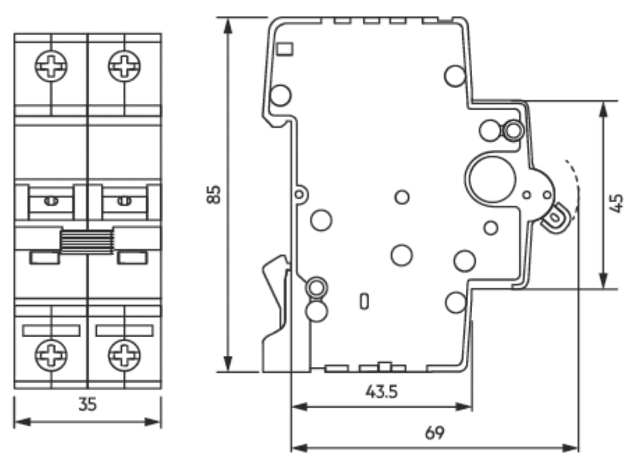 INTERRUTTORE AUTOMATICO AEG SERIE ELFANEXT, MODELLO EN60 1POLO/ 1POLO+N/ 2POLI/ 3POLI/ 4POLI, TENSIONE NOMINALE 1P 230VAC, 1P+N 230VAC, 2...4P 400VAC, CORRENTE NOMINALE DA 0,5A A 63A, TENSIONE MINIMA-MASSIMA DI FUNZIONAMENTO 1P 12-253VAC,1P+N 12-253VAC,2...4P 12-462VAC, 2P 12-125VDC, TENSIONE DI ISOLAMENTO 250/440VAC, CURVA DI INTERVENTO DI TIPO B/C/D, FREQUENZA 50/60HZ, POTERE DI INTERRUZIONE 6kA SECONDO EN60898, CAPACITA' DI ROTTURA 10KA SECONDO EN60947-2, TEMPERATURA DI FUNZIONAMENTO -25/+55°C, TEMPERATURA DI STOCCAGGIO -40/+70°C, GRADO DI PROTEZIONE IP40 PER APPARECCHIO E IP20 PER I TERMINALI, VITA MECCANICA 20.000 MANOVRE, VITA ELETTRICA 20.000 MANOVRE FINO A 32A, 10.000 MANOVRE DOPO I 32 A, CAPACITA' DEI TERMINALI 0,75/35MM2 FLESSIBILE/RIGIDO, COPPIA DI SERRAGGIO 2NM (4,5 NM MASSIMO), ATTACCHI CON FAILSAFE CON CONNESSIONE A FORCELLA SOPRA/SOTTO, COLORE RAL 7035, SEGNALAZIONE FRONTALE DI STATO E SCATTATO TRAMITE APPOSITE FINESTRELLE MECCANICHE, POSIZIONE DI MONTAGGIO QUALSIASI