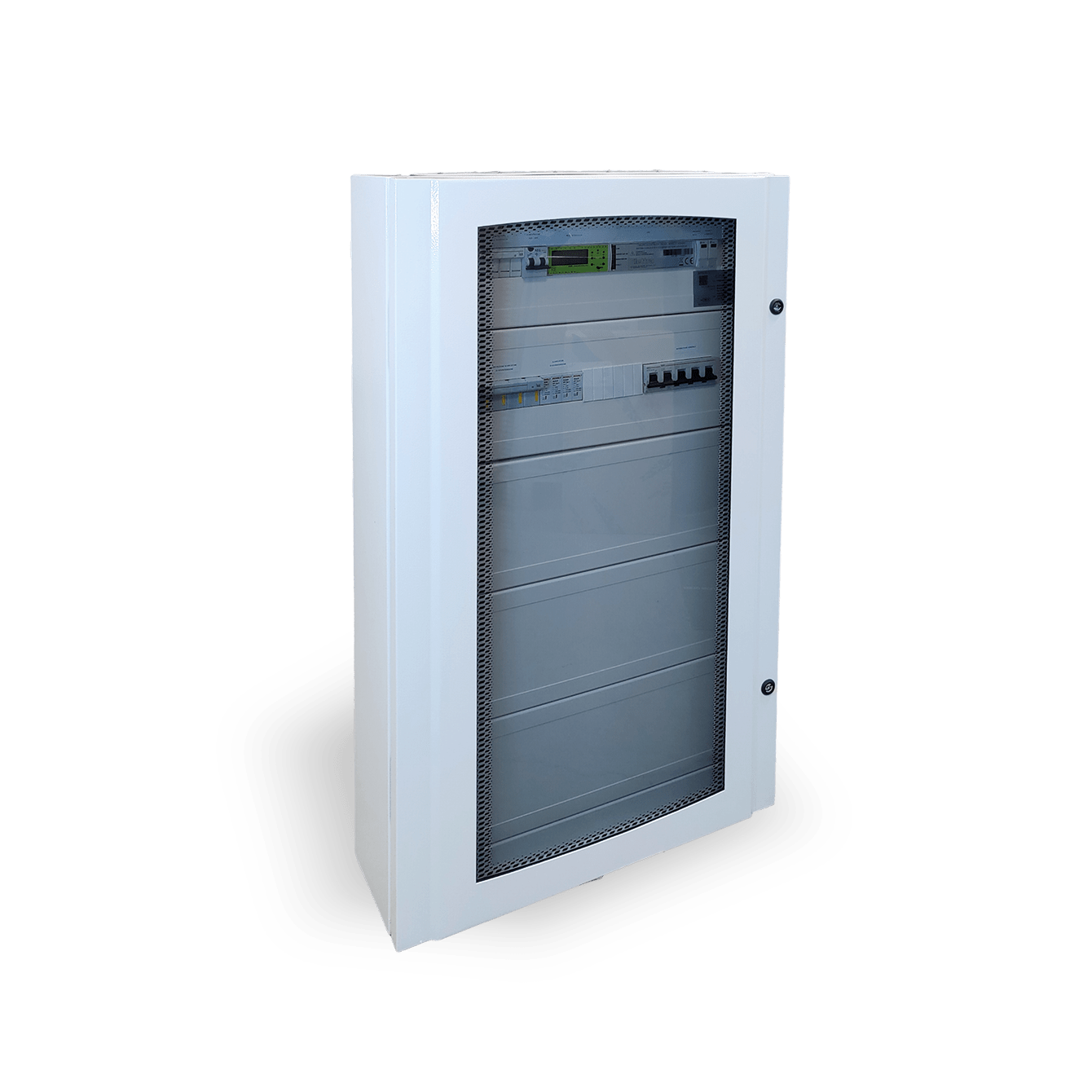 I quadri di interfaccia OPEN sono una valida soluzione per la connessione di impianti fotovoltaici CEI 0-21. I quadri OPEN nascono con lo spazio di cablaggio per gli interruttori di protezione inverter che saranno installabili successivamente tramite i collegamenti già forniti. Interruttore Generale 4x100A 50kA (EN60947-2) con bobina di sgancio per funzione di rincalzo-Relè di interfaccia NA003+Ups di emergenza (CEI 0-21)-Contattore DDI 4 poli 116A AC-3. Spazio per cablaggio Interruttori protezione inverter 3F+N:1x50kW;2x25kW (oppure 40kW+10kW o 30kW+20kW), 3x15kW, 4x12,5kW, 5x10kW-Kit di cablaggio incluso(6x35mm2 nero+2x35mm2 blu; 9x16mm2 nero+3x16mm2 blu)-Interruttori previsti 3F+N (da ordinare a parte):10kW DMA63NPC20/300;12,5kW DMA63NPC25/300;15kW DMA63NPC32/300; 20kW E94SC40+HD9532/300; 25kW E94SC50+HD9463/300;33kW E94SC63+HD9463/300;40kW E880504C80+HD94100/300;50kW E880504C100+HD94100/300. I componenti sono racchiusi in un contenitore a parete in metallo IP65 LxHxP 670x110x212mm.