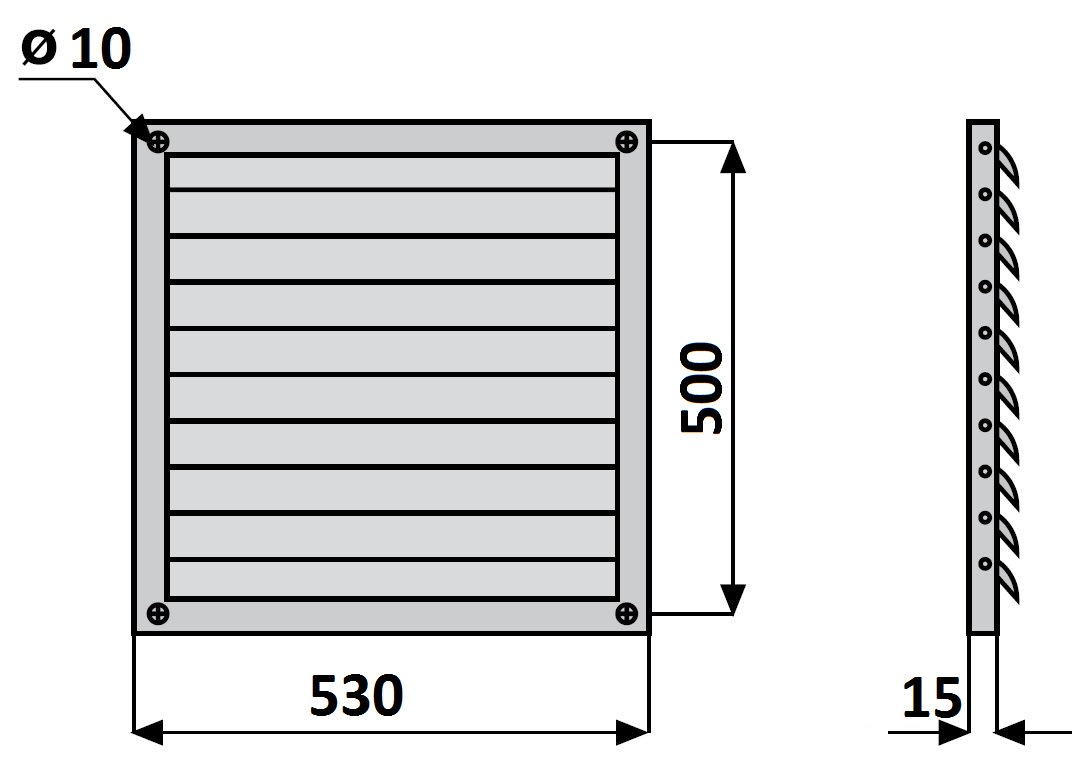 Larghezza nominale del condotto - 530 mm