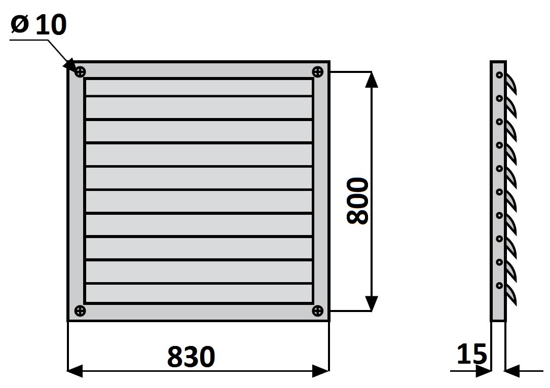 • Montata all’esterno, si apre ad apparecchio acceso e si richiude per gravità ad apparecchio spento • Evita l’ingresso di vento, pioggia o volatili • Telaio in acciaio verniciato con polveri epossidiche • Alette in PVC rigido.