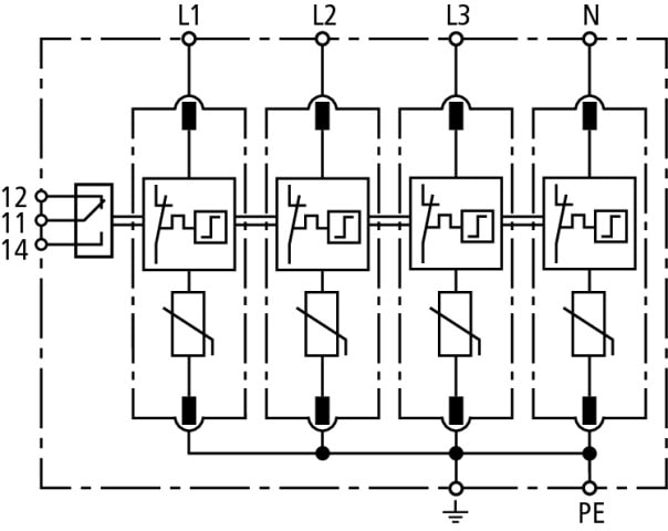 DEHN - Limitatore di sovratensione Tipo 2 DEHNguard M per reti trifase TNS con FM SPD 4P 385V CON CONTATTO DG M TNS 385. - 952409