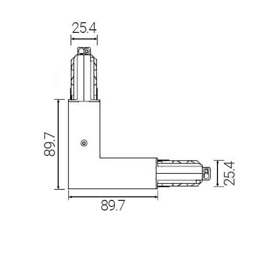 Giunto a tre vie 90° destra ON-OFF / DALI 250V-50Hz max 16A per versione H. Colore: Bianco RAL 9003.