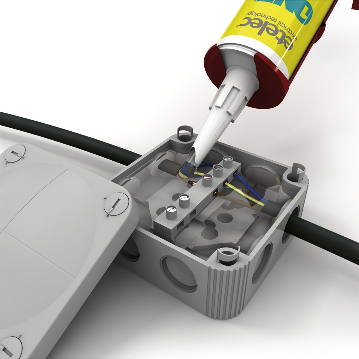 Gel siliconico monocomponente riempitivo ed isolante in cartuccia Applicazioni - Riempimento di muffole e cassette di derivazione - Isolamento di connessioni elettriche 0,6/1 kV - Isolamento di schede e componenti elettronici - Indicato in caso di accesso dif cile alla cassetta e/o alla connessione - Indicato per impieghi in verticale o ad orizzonte rovesciato - Impiego nei settori civile, industriale, navale, aeronautico, automotive Caratteristiche - Gel siliconico monocomponente - Consistenza tixotropica - Colore azzurro trasparente - Inodore - Assenza di solventi - Cartuccia da 310 ml - Prodotto non pericoloso come da direttiva CE 67/548/ CEE o 1999/45/CE
