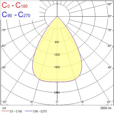 • Angolo di emissione del fascio luminoso - Ad ampio raggio 40-80°
