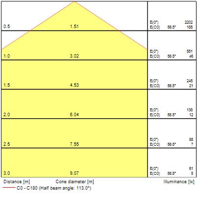 Flusso luminoso calcolato secondo la norma IEC 62722-2-1: