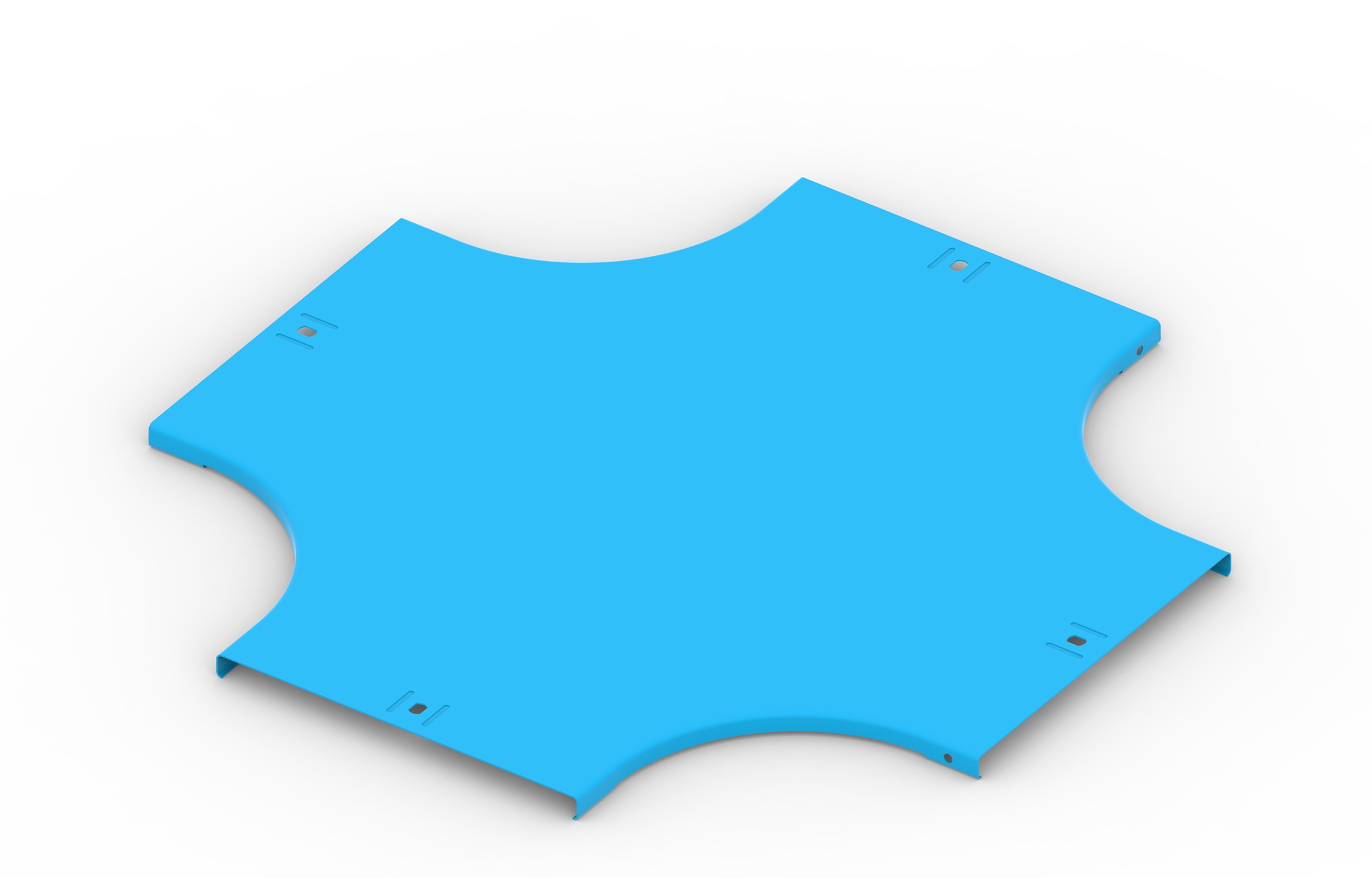 Articolo della serie FEMI3 costituito da derivazione piana X, raggio R=100mm, in acciaio al carbonio zincato sendzimir con trattamento di protezione superficiale tramite verniciatura a polvere epossipoliestere a circa 180 °C. Colorazione standard blu RAL5012, disponibili altri colori a richiesta. Si raccomanda per installazioni interne.