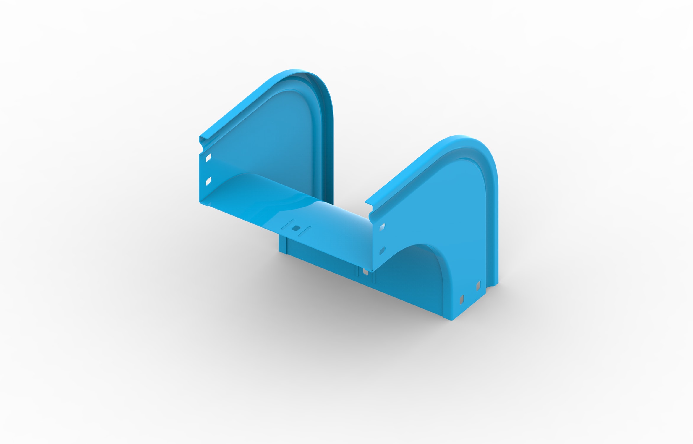 Articolo della serie FEMI3 costituito da elemento discesa 90°, raggio R=100mm, in acciaio al carbonio zincato sendzimir con trattamento di protezione superficiale tramite verniciatura a polvere epossipoliestere a circa 180 °C. Colorazione standard blu RAL 5012, disponibili altri colori a richiesta. Si raccomanda per installazioni interne.