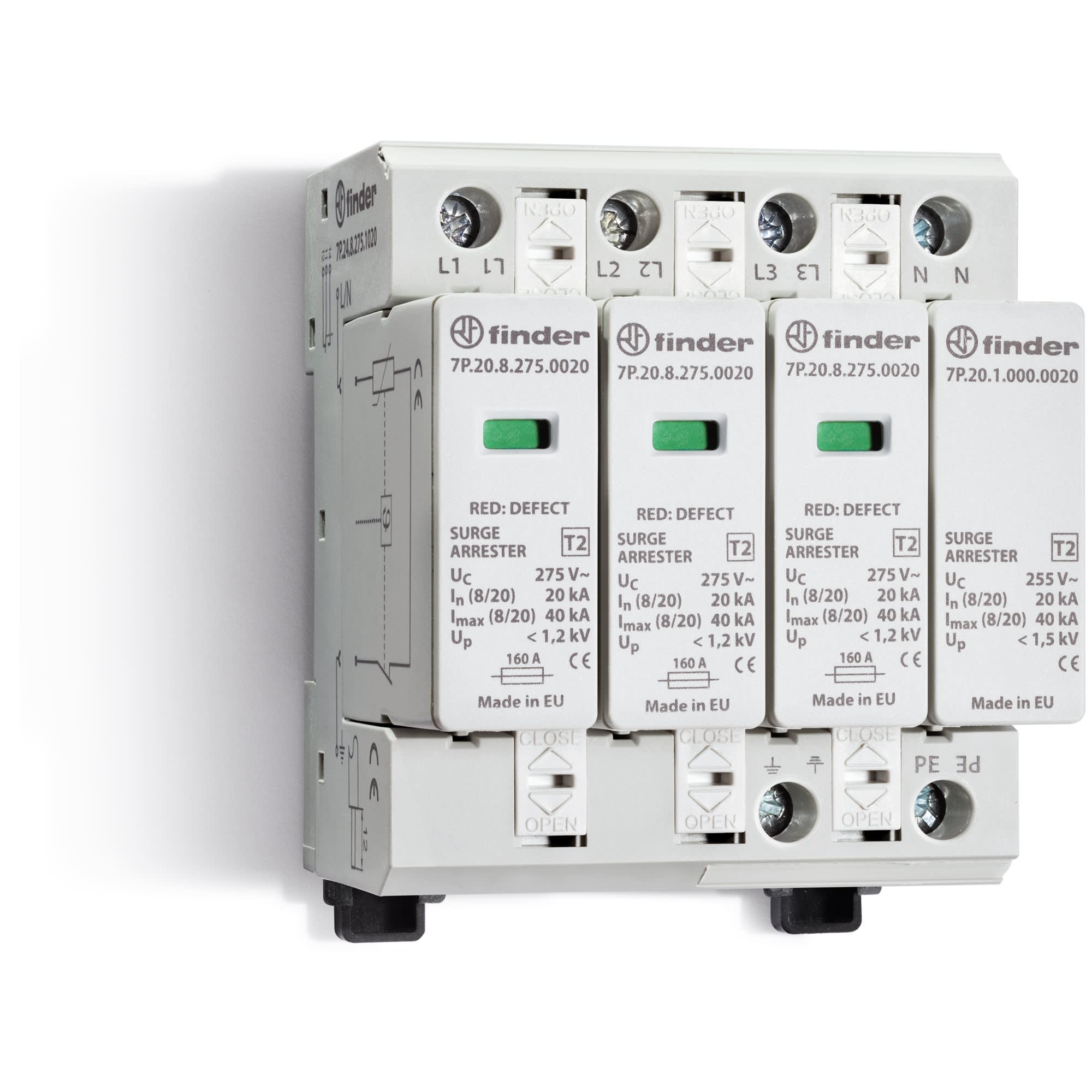 FINDER SPA - FIN7P2482750020 SPD CLASSE2 TRIF 4P 275VAC 3+1 20KA NO R - 7P2482750020