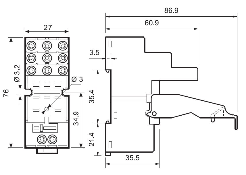 FINDER SPA - FIN9403SMA ZOCCOLO CON MORSETTI A BUSSOLA 3P S.55/8 - 9403SMA