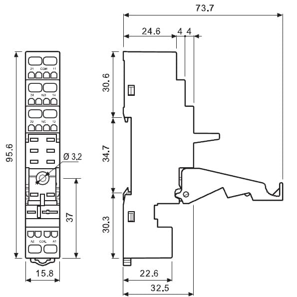 FINDER SPA - FIN9555SMA ZOCCOLO CON MORSETTI A MOLLA 2P S.40/41/44 - 9555SMA