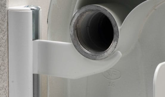 Mensola per radiatori in alluminio RC / RX / TF La mensola bianca per radiatori in alluminio Materiali di supporto: Calcestruzzo Mattone pieno in laterizio Mattone semipieno (perforato verticalmente) in laterizio Lastra di cartongesso Vantaggi: Le mensole RC e RX sono plastificate bianche per attutire i rumori, le mensole TF sono verniciate bianche. Tutte le mensole minimizzano l'impatto estetico, mantenendo così inalterato l'aspetto estetico del radiatore. Le mensole RC e RX permettono la regolazione verticale del radiatore per un facile allineamento delle staffe. Le mensole RX sono dotate dei tasselli in nylon SX 8 che garantiscono tenute elevate. Le mensole RC sono dotate dei fissaggi metallici per lastre e pannelli HM e sono progettate e testate per lastre di cartongesso singole e doppie. Le mensole TF sono dotate di fissaggio a percussione C che consente una rapida installazione su supporti pieni e semipieni. Le mensole TF..B hanno sezione tonda, mentre le mensole TF..BP hanno sezione piatta con smusso verticale. Questo permette l'installazione di diverse tipologie di radiatori. Applicazioni: Fissaggio di radiatori in alluminio Funzionamento: Mensole RC e RX: Posizionare il radiatore alla corretta altezza sulla parete. Usando la livella, segnare la posizione delle 2 mensole per radiatori. Segnare quindi la posizione dei 2 fissaggi di ciascun profilo di supporto. Forare il materiale di supporto. Utilizzare i fissaggi metallici HM per lastre di cartongesso, oppure i fissaggi in nylon SX per materiali pieni e semipieni. Avvitare la vite di regolazione a testa bombata sulla staffa della mensola fino a 15 mm dal bordo. Inserire la staffa nel profilo di supporto. Sono possibili due regolazioni in profondità . Applicare i tappi in plastica bianca sulla sommità dei profili di supporto. Agendo sulla vite a testa bombata regolare l'altezza finale della staffa. Mensole TF: Posizionare il radiatore alla corretta altezza sulla parete. Usando la livella, segnare la posizione delle 2 mensole per radiatori. Segnare quindi la posizione dei fissaggi. Forare la parete (perforazione a rotazione in muratura di mattoni semipieni e forati) e installare il fissaggio adeguato fornito nella confezione, seguendo le istruzioni di installazione. Specifiche tecniche: Contenuto per busta in plastica: 4 fissaggi HM 4 x 45, 2 piastre, 2 viti di regolazione, 2 ganci,2 tappi bianchi; Lunghezza utile: 75; Diametro foro - d0 - [mm]: 8; Colore: Bianco RAL 9010; Distanza tra i fori verticali - L1 - [mm]: 78; Riferimenti: EAN: 8001132033814 Codice fischer: 523972