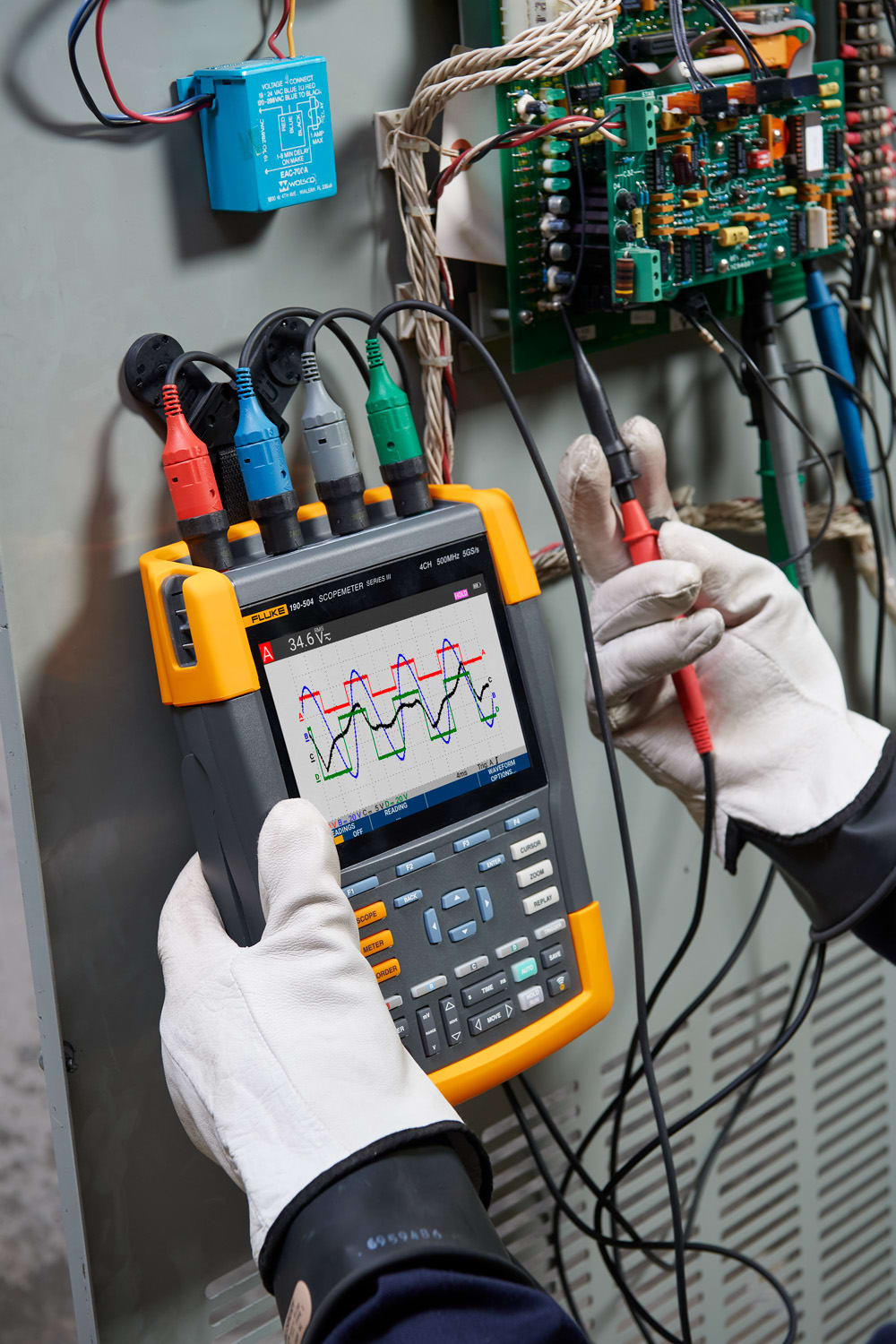 Oscilloscopi portatili ad alte prestazioni progettati per ambienti difficili. Gli strumenti di misura ScopeMeter 190 serie III di Fluke sono progettati per essere utilizzati ovunque e per affrontare qualsiasi lavoro di ricerca guasti. Questi strumenti dimisura classificati CAT III 1000 V/CAT IV 600 V combinano la portabilità e la robustezza con le elevate prestazioni tipiche degli oscilloscopi da banco per aiutare ad affrontare con facilità le sfide di installazione, messa in servizio e manutenzione di macchinari industriali, controlli di automazione e di processo ed elettroniche di conversione di potenza, da DC a 500 MHz. Lo strumento è disponibile nei modelli a due o quattro canali con un'ampia gamma di opzioni in termini di larghezza di banda. L'elevata velocità di campionamento fino a 5,0 GS/s, la risoluzione di 200 ps e la vasta memoria di 10.000 campioni per canale consentono un'acquisizione di alta precisione e la visualizzazione dei dettagli relativi alla forma d'onda, del rumore e di altri disturbi. Consente di eseguire misurazioni relative ala tempistica o all'ampiezza in sistemi di controllo trifase o a tre assi, oppure semplicemente di confrontare e contrapporre punti di test multipli in un circuito sottoposto a prova. Funzioni quali registrazione senza carta TrendPlot™, modalità ScopeRecord™, trigger Connect-and-View™ e un'esclusiva funzione Replay di 100 schermate consentono di diagnosticare rapidamente i problemi per ridurre al minimo i costi di riparazione e i tempi di inattività. Questefunzionalità rendono gli oscilloscopi facili da usare, soprattutto quando si diagnosticano i problemi più difficoltosi, come forme d'onda complesse, rumore indotto, eventi intermittenti e fluttuazioni o deriva di segnale.