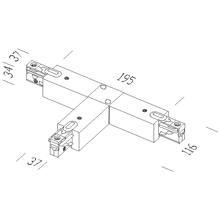 Elemento già assemblato, di immediato utilizzo. Consente la connessione elettrica “sinistra” e meccanica per la giunzione a “T”. Corredato di 2 tappi di chiusura e di cavo elettrico. Possibilità di entrata di alimentazione di fianco e dal retro.