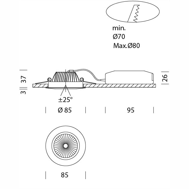 Adatto per montaggio a incasso:
