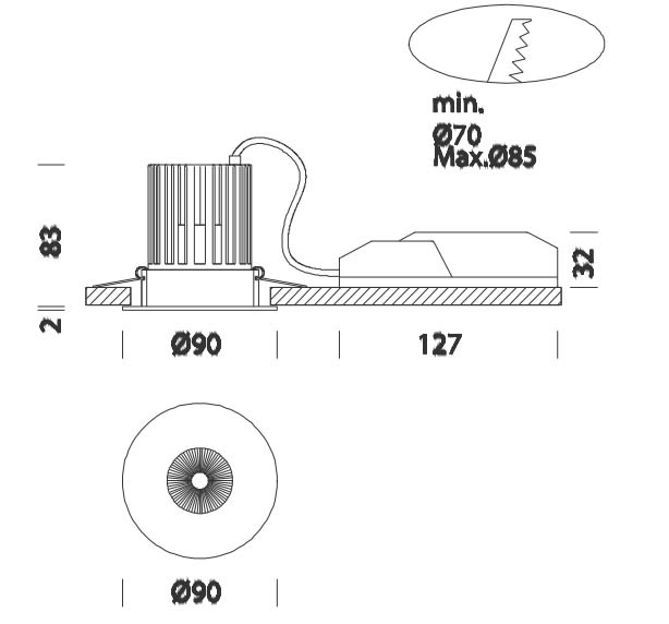 Dimmerabile tramite potenziometro (integrato nell'apparecchio):