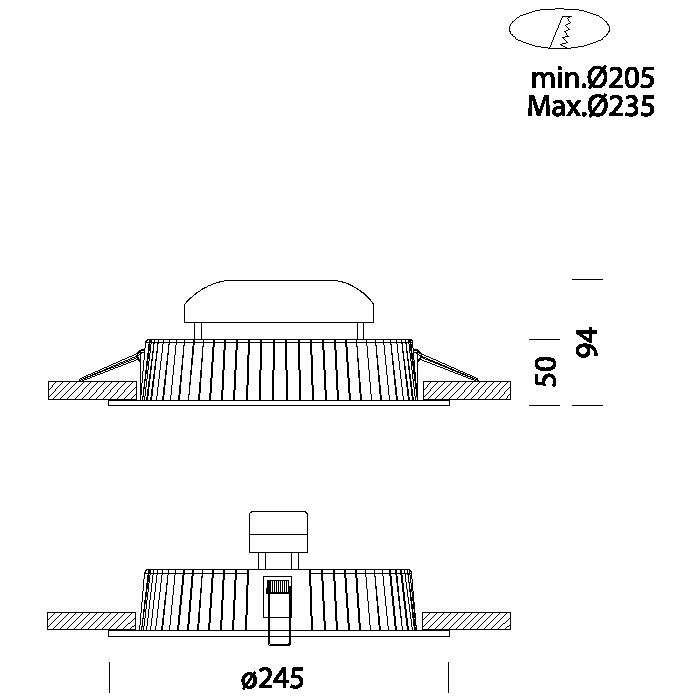 Dimmerabile tramite potenziometro (integrato nell'apparecchio):