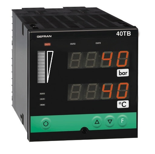 doppio indicatore /intercettatore di temperatura:pressione. Mod:40TB Alimentazione sensore:10Vdc/120mA (strain gauge) uscita ritrasmissione:Nessuna comunicazione seriale: Nessuna Alimentazione: 100...240Vac/dc