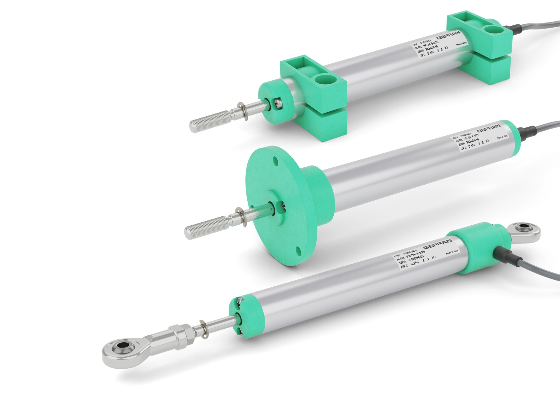 I trasduttori lineari ed angolari di posizione consentono il rilevamento della posizione di parti meccaniche in movimento. La rilevazione della posizione di tipo assoluta avviene in tempo reale grazie alla tecnologia potenziometrica dove pista resistiva e collettrice sono collegate elettricamente per mezzo di spazzole a contatto diretto, montate su di un cursore, datore fisico della posizione. Il corpo dei trasduttori di posizione e costituito da diversi materiali come l alluminio anodizzato, l acciaio inossidabile AISI 316 o in materiale plastico PBT caricato con fibre di vetro, dove quest ultimo e un polimero prevalentemente utilizzato nel settore automotive, resistente ai raggi UV, nebbie saline, acidi e altri agenti aggressivi. I potenziometri Gefransono partitori di tensione alimentabili da 1 a 60Vdc. La custodia cilindrica da 3/4 pollice (19mm), unitamente alla disponibilita di tutti i sistemi di fissaggio (staffe, snodi o flangia), rende la serie PZ34 particolarmente versatile per la risoluzione di una gamma sempre piu ampia di applicazioni. Ideale per macchine per la lavorazione e rifinitura di lastre di legno, di metallo o ripiani in vetro come per banchi prova nel settore automotive o nel settore geotecnico per riconoscere variazioni nelle crepe o cedimenti di argini, ponti o volte. Grado di protezione ambientale IP40. Corse di misura elettrica da 25 a 300 mm.