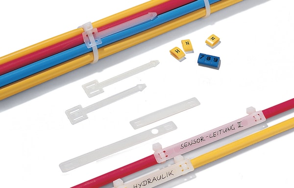 Targhette a freccia da fissare con una fascetta. Da identificare con il pennarello T82 o con i marcacavi Ovalgrip. AT1 per 7 Ovalgrip di dimensione 50. AT2 per 8 Ovalgrip di dimensione 85. AT3 per 14 Ovalgrip di dimensione 85. Disponibili su richiesta targhette prestampate. Le targhette sono ideali per l'identificazione di grossi tubi e cavi anche dopo la terminazione. Possono essere identificate con i segnafili Ovalgrip o manualmente con i pennarelli indelebili T82.