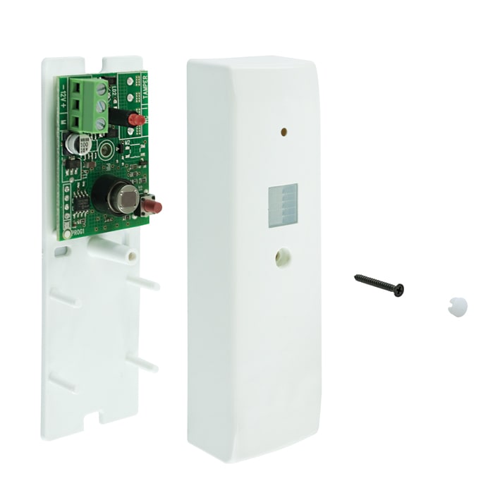 Rivelatore infrarossi passiviper porte e finestre. Tamper di protezione antiapertura. LED di segnalazione. Uscite relè a stato solido NC 100mA, 50Vcc max. Conforme alla norma CEI EN 50131-1