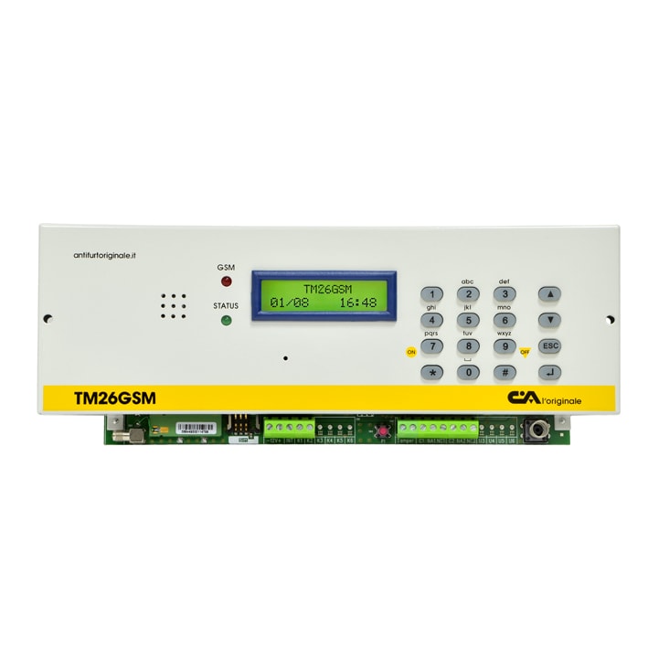 PANNELLO COMBINATORE TELEFONICO GSM 2IN/2OUT SERIE TM. •Microfono incorporato •Modulo GSM •Ascolto ambientale da remoto •Ritardo programmabile singolarmente sugli ingressi •Possibilità di abbinare ad ogni numero telefonico uno, alcuni o tutti i canali del combinatore •Tamper di protezione antiapertura •Indicazione dell'intensità di segnale GSM e del gestore telefonico •Numero di ripetizioni messaggio e cicli di chiamata programmabili •Mascheramento ID chiamante •Attivazione di una uscita con un solo squillo (chiamata senza risposta) da uno dei numeri presenti nella rubrica SMS, con il re-invio di uno squillo di conferma (funzione CLIP) •Conforme alla norma CEI EN 50131-1