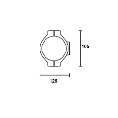 Flangia finalizzata al fissaggio di due proiettori Maxiwoody corpo piccolo o medio su palo cilindrico ø102mm. Realizzata in pressofusione di alluminio e verniciata con trattamento superficiale di verniciatura liquida texturizzata. La flangia può essere installata su qualunque palo con diametro ø102mm senza operazioni di foratura per il fissaggio meccanico. Consente la rotazione completa del proiettore Maxiwoody in ogni direzione, grazie alla combinazione delle rotazioni tra proiettore e la sua staffa (continua) e delle rotazioni tra staffa e flangia (360°). L'installazione è garantita da viterie e dadi in acciaio inox. Sulla flangia sono presenti sedi esagonali per l'antirotazione dei dadi. Cablaggio: Il cavo di alimentazione fuoriesce dal palo tramite il passaggio in un passacavo con foro da d=15mm.