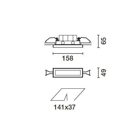 Apparecchio miniaturizzato ad incasso rettangolare a due elementi ottici con sorgenti LED Neutral White - ottica Wide Flood fissa, DALI. Costituito da vano ottico (di forma rettangolare), cornice, vetro, cavo uscente e accessori di installazione da ordinare separatamente ove necessario. Vano ottico e cornice sono realizzati in lega di alluminio e sotto posti ad un processo di pretrattamento multi-step, in cui le fasi principali sono sgrassaggio, fluorozirconatura (strato protettivo superficiale) e sigillatura (strato nano-strutturato ai silani). La fase successiva di verniciatura è realizzata con primer e vernice acrilica liquida, cotta a 150°, che fornisce un'alta resistenza agli agenti atmosferici ed ai raggi UV. Cornice porta-vetro completa con tappi di estremità in materiale plastico. Vetro di chiusura sodico calcico temperato, trasparente con serigrafia nera sul bordo, spessore 3mm, siliconato alla cornice. Guarnizioni in silicone interposte tra cornice porta-vetro e vano ottico. Ottica ad alta definizione in termoplastico metallizzato, integrata in posizione arretrata nello schermo antiabbagliamento nero. Molle di sostegno in acciaio inox AISI304. Fornito di box IP65 completo di alimentatore con cavo uscente per la connessione. Collegamento tra vano ottico e alimentatore tramite connettori ad innesto rapido IP68. Tutte le viterie esterne utilizzate sono in acciaio inox A2. Potenza nominale [W]: 10. Temperatura colore [K]: 4000. Flusso nominale [Lm]: 920