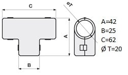 Giunto a T ispezionabile in 2 pezzi si mmetrici, per tre tubi rigidi dello stesso diametro. Autoestinguente UL94: V0, realizzato in PVC resistente UV. Garantisce una resistenza GWT 850° (EN 60695-2-11). grigio RAL 7035. Diametro 20 mm. Assicura un grado di protezione IP40.