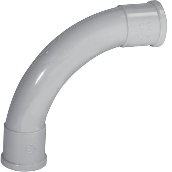 Curva a 90° per tubi rigidi di diametro 32 mm, autoestinguente UL94: V0,realizzata in PVC rigido grigio RAL 7035. Gradi di protezione IP65, resistente ai raggi UV e al filo incandescente GWT 850°C (EN 60695-2-11). Assicura un’installazione sicura e affidabile sia indoor che outdoor.