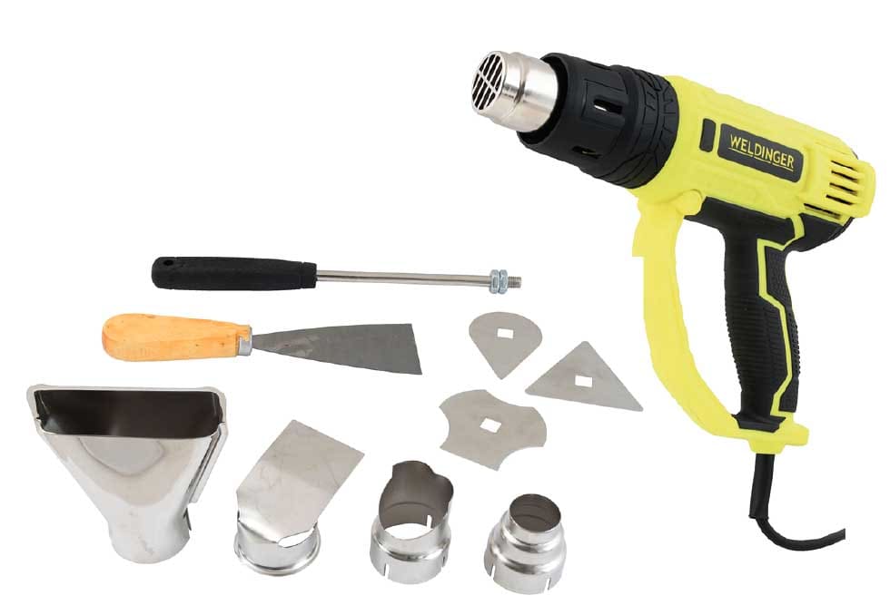 Set 9 pz. pistola ad aria calda HG1 completo di accessori. Pistola ad aria calda HG1 - 60°C-600°C Ideale per asciugare, saldare e termorestringere. Caratteristiche: • Regolabile da 60-600°C • Commutabile a due stadi, livello 1: 60°C, livello 2:60-600°C, con sei velocità della ventola • Con display digitale per la visualizzazione della temperatura • Impugnatura ergonomica, bicomponente • Tensione di rete 230 V/50 Hz • Potenza nominale 2000 W • Intervallo di temperatura 60-600°C • Portataaria 300-500 l/min • Classe di protezione II, doppio isolamento • Peso 800 g Il set include: • Valigetta di trasporto • Pistola ad aria calda • Ugello a punta media • Ugello riduttore • Ugello riflettore • Ugello a getto largo • Spatola • Porta lama • 3 lame universal